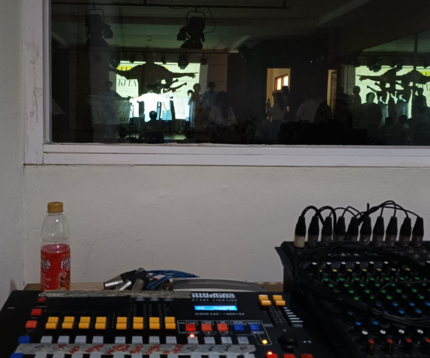 Selain itu, posisi pengatur lampu dengan panggung sangat jauh sehingga saya seringkali tidak menangkap tanda-tanda kapan saya harus mematikan lampu atau menyalakannya, sehingga saat latihan tidak bisa dengan lancar karena lampu yang kelamaan atau kecepatan. Pada akhirnya, saya dibantu oleh teman saya yang berada di depan untuk memberikan saya aba-aba kapan mematikan dan kapan menyalakan.